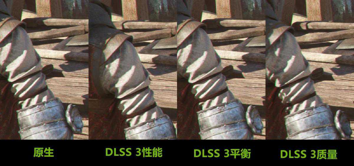 我们用《瘟疫传说:安魂曲》对DLSS3的画质也进行了测评。从截图细节可以看到,即便是最注重帧率的DLSS3性能模式,其画面精度也完全不输原生4K,而它的帧率则相当于原生4K的2.5倍以上,帧生成技术为玩家提供了两全其美的游戏体验,可见DLSS3黑科技的强大。