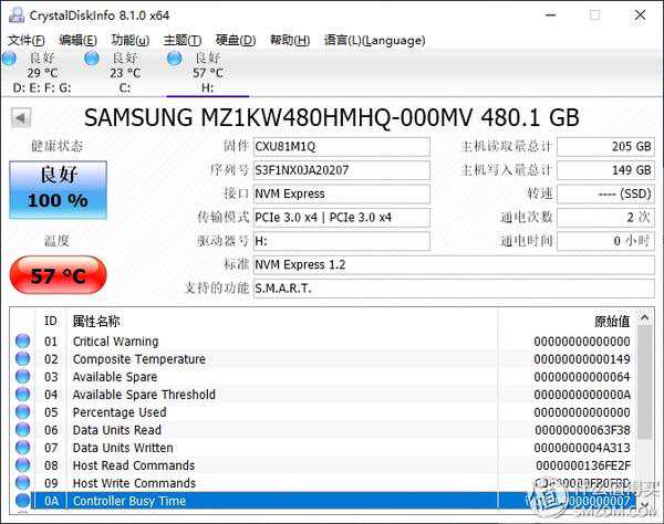 CDI看看相关信息,2次,怪不得有插痕,你插一次,我插一次,要是通电次数只有1次,我看你怎么解释插痕哪来的,读写量是刚才跑ASSSD产生的,温度39度,好好好。