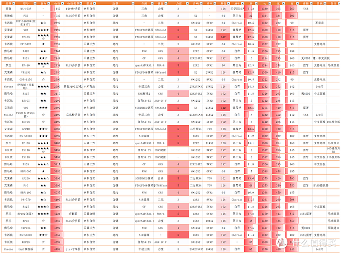 参数只是我个人尽可能从官方渠道获取的,其他的自然还有音色,音域,录制长度等,具体可以在看好了大致几款琴后再深入了解一下各自音源技术,琴键技术等。