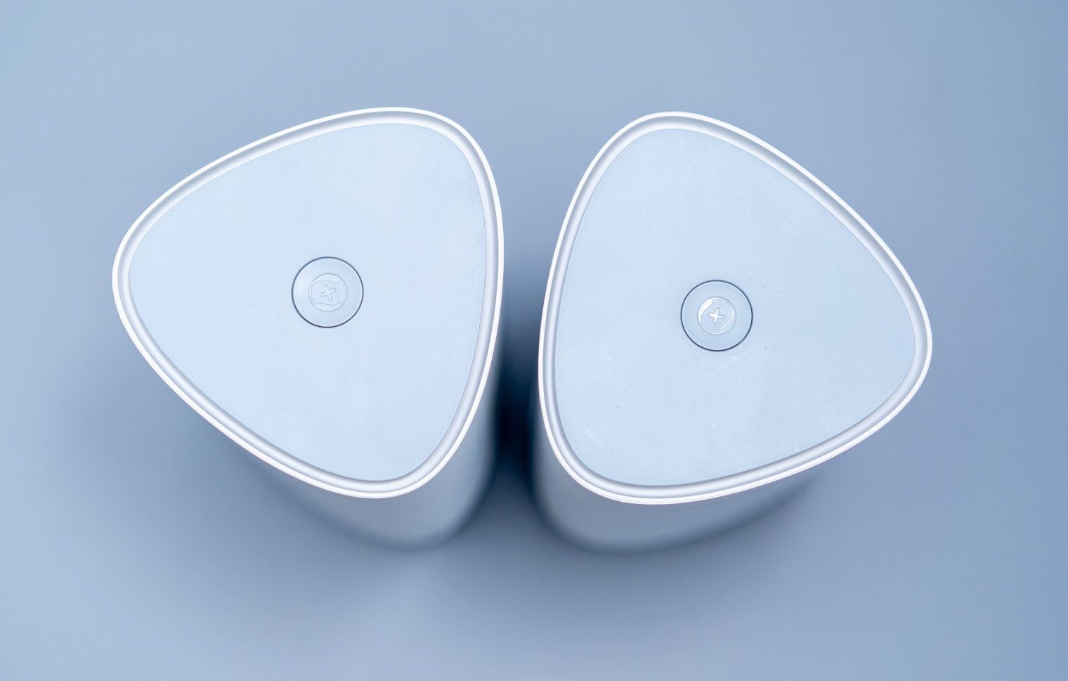 6、路由器是三角形柱状外形,体积比想象中略小一点,有点像小音箱: