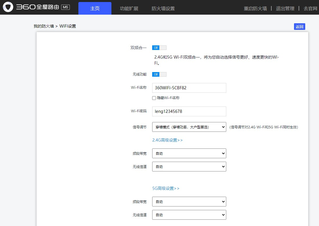 14、WIFI支持双频合一,就是2.4G和5G可以设置同一个WIFI名称,根据不同的客户端自动分配5G或者2.4G信号: