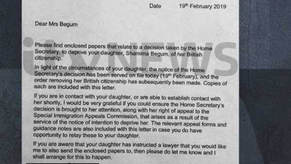 英国内政大臣贾维德(SajidJavid)在2月17日声称“动用一切力量阻止她回国”,之后贝居姆的家人在2月19日收到了英国内政部取消贝居姆英国国籍的通知信。