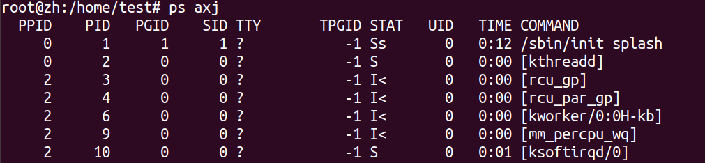 查看守护进程psaxja:显示所有x:显示没有控制终端的进程j:显示与作业有关的信息(显示的列):会话期ID(SID),进程组ID(PGID),控制终端(TT),终端进程组ID(TRGID)