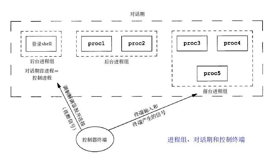 进程组、对话期和控制终端关系